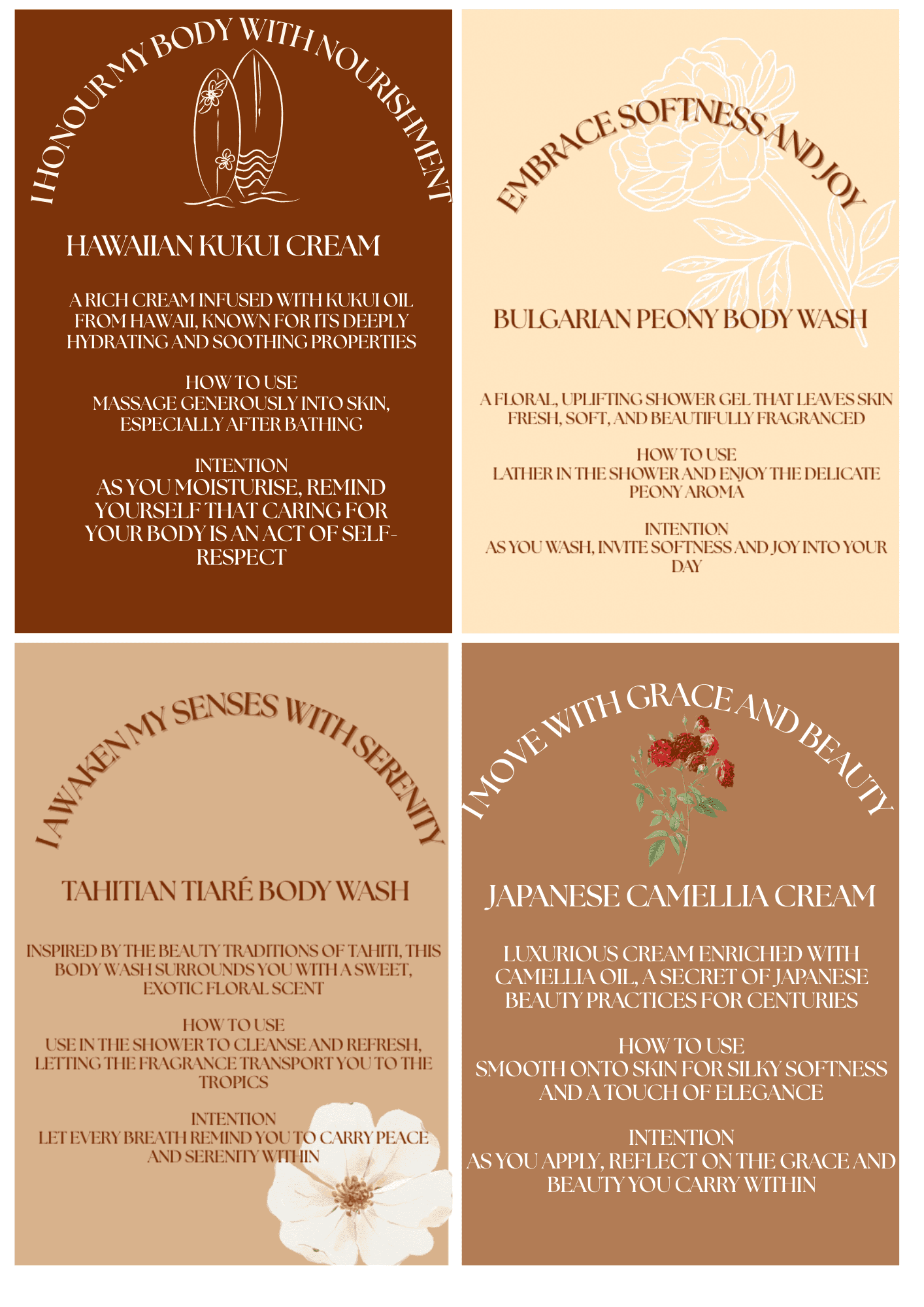 Each guest received a thoughtfully assembled gift bag containing miniature versions of bestselling products from our new range, a tea sachet to extend the spa experience at home, and selected hero items including Tea Tree Oil and Vitamin E Moisturiser. I also designed personalised “intention cards” for each product, featuring concise usage guidance and a complementary quote, which were distributed based on individual product selections to create a more tailored and memorable experience.